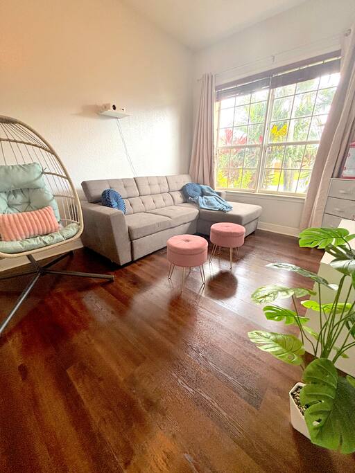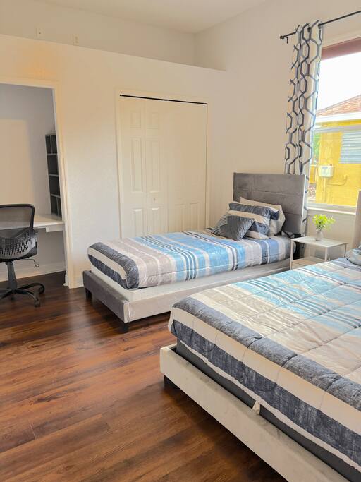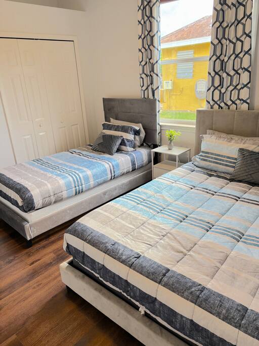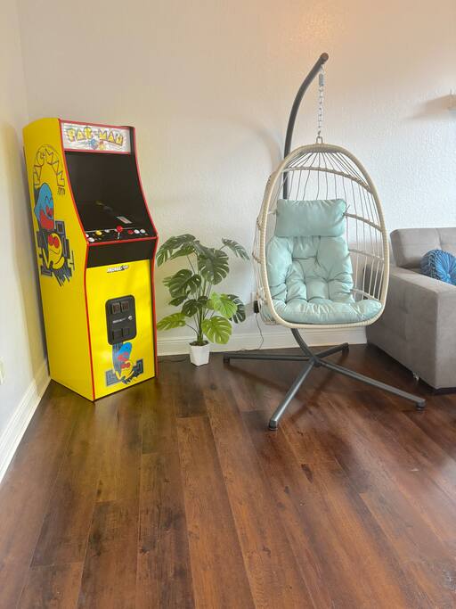 Welcome to Palm Paradise, a one of a kind 5-bedroom retreat surrounded by swaying palms in sunny Port St. Lucie! Designed for large families, reunions, and group getaways, this expansive home sleeps up to 23 guests and offers a private saltwater pool, outdoor kitchen with BBQ, a firepit lounge, and endless entertainment inside and out. Just minutes away from golf, shopping, and dining—your dream Florida escape awaits! Main House – Bedrooms & Sleeping Layout Master Suite: King bed, massive en suite with two showers, jetted tub, double vanities & pool view (sleeps 2) Bedroom 1: Queen bed (sleeps 2) Bedroom 2: Queen bunk + twin trundle (sleeps 5) Bedroom 3: Queen bed + twin bunk (sleeps 4) Bedroom 4: Queen bed + twin bed (sleeps 3) Flex Room: Twin-over-full bunk (sleeps 3) Den: Sleeper sofa (sleeps 2) Living Room: Oversized sleeper sectional (sleeps 2) Total: 8 sleeping spaces | 23 guests Indoor Amenities Den Game Lounge: Pac-Man arcade, projector with screen, popcorn maker & family games Living Room: Huge sectional, smart TV & electric fireplace Fully stocked kitchen & dining area for group meals Laundry room with washer/dryer for guest use Outdoor Paradise Saltwater pool with plenty of loungers for sunbathing Outdoor kitchen with BBQ grill & sink for poolside feasts Gas firepit with plush sectional for evening cocktails Tall palm trees and lush landscaping create total privacy and a tropical resort vibe